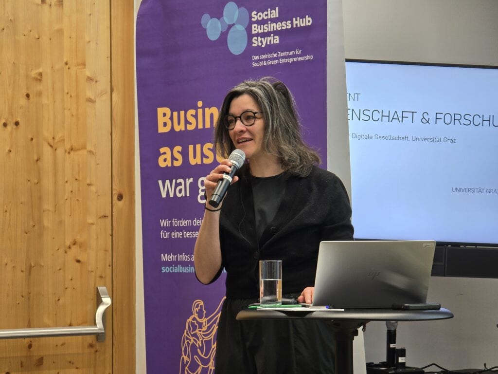 Technologie darf jedoch kein Selbstzweck sein. Univ.-Prof. Juliane Jarke (Universität Graz, Digitale Gesellschaft) lieferte die notwendige wissenschaftliche Einordnung. Ihr Fokus lag nicht auf der Machbarkeit, sondern auf der Gerechtigkeit. Sie beleuchtete das Thema unter der Fragestellung: „Wie können wir unsere digitale Zukunft inklusiver und sozial gerecht gestalten?“ .