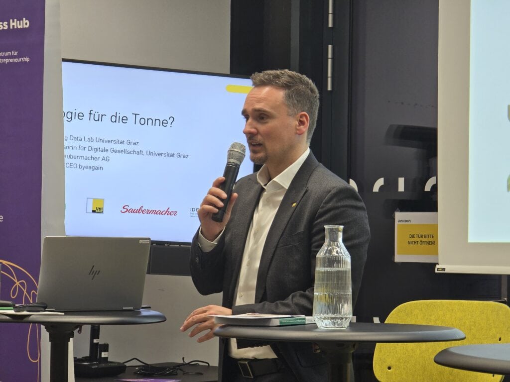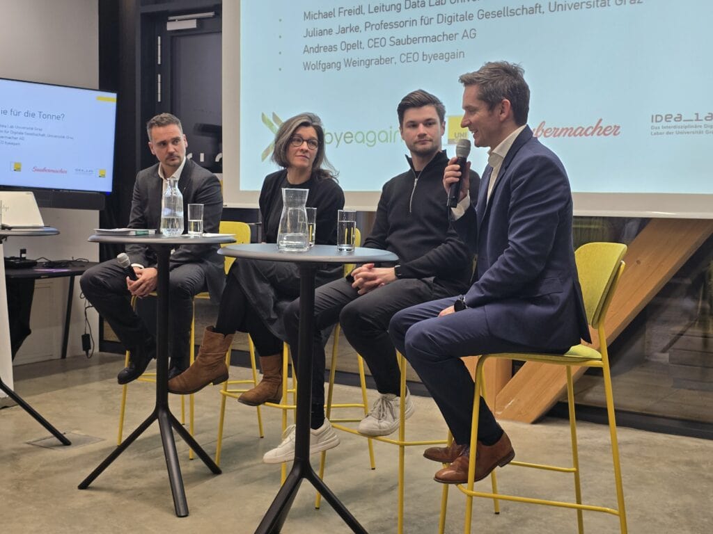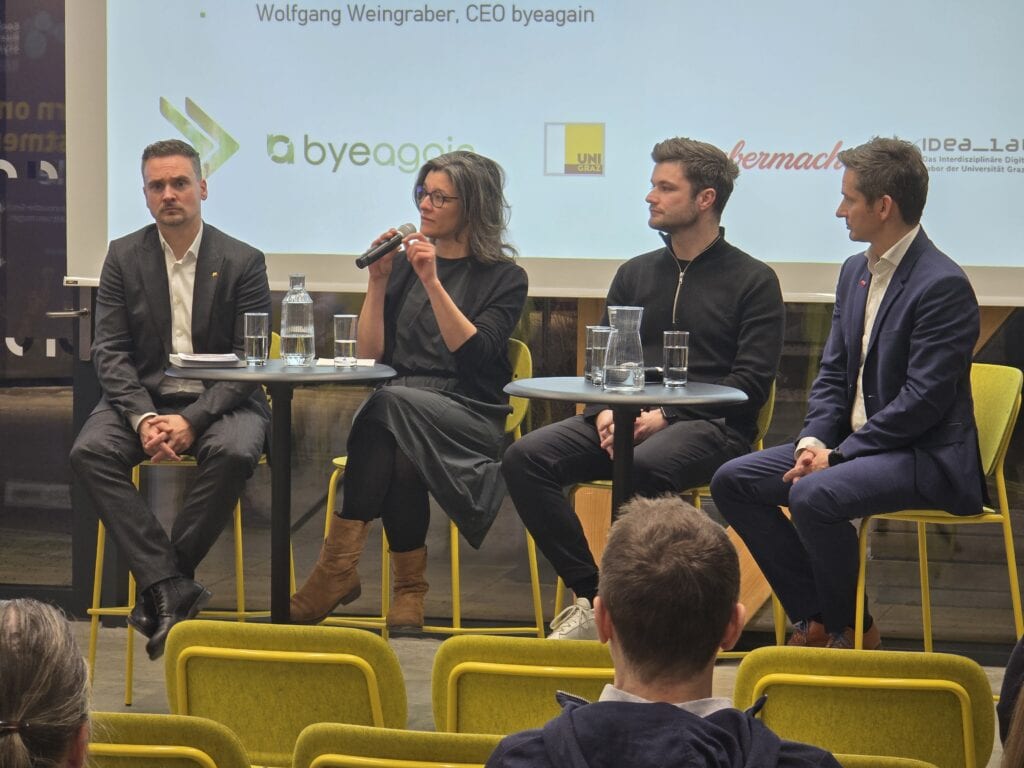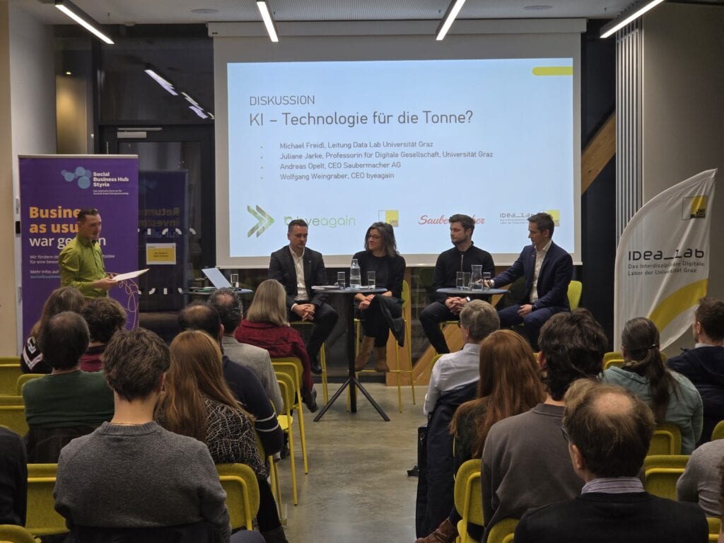 Den Höhepunkt des Abends bildete die Podiumsdiskussion, an der neben den Speakern auch Michael Freidl (Leitung Data Lab, Universität Graz) teilnahm. Hier wurde nicht nur gelobt, sondern kritisch hinterfragt. Die Runde diskutierte offen über die Balance zwischen Fortschritt und Verantwortung: