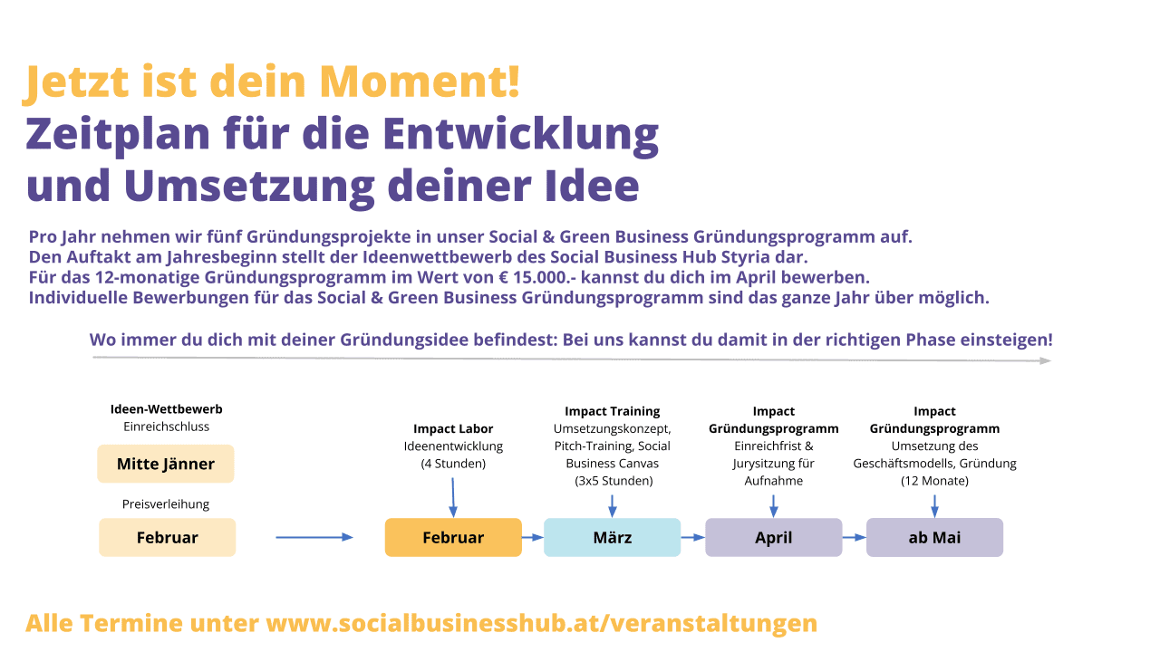 Im Impact Training entwickelst du im Rahmen von mehreren Ganztages-Workshops ein Geschäftsmodell für deine Idee und bringst diese auf den Punkt. Beim Austausch mit anderen überprüfst du dein Konzept kritisch und entwickelst es weiter. Ziel ist es, eine solide Grundlage für eine Unternehmensgründung zu schaffen.