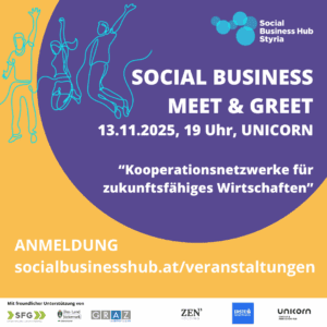 Die bereits vierte Ausgabe des größten Community-Events der steirischen Social Business Szene findet am 13.11.2025 ab 19:00 Uhr (Einlass: 18:30 Uhr) im UNICORN Startup & Innovation Hub statt!